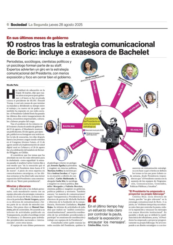En La Segunda -diario que accedió a formarme parcialmente en estos temas-hay un artículo sobre los asesores comunicacionales del presidente Gabriel Boric.