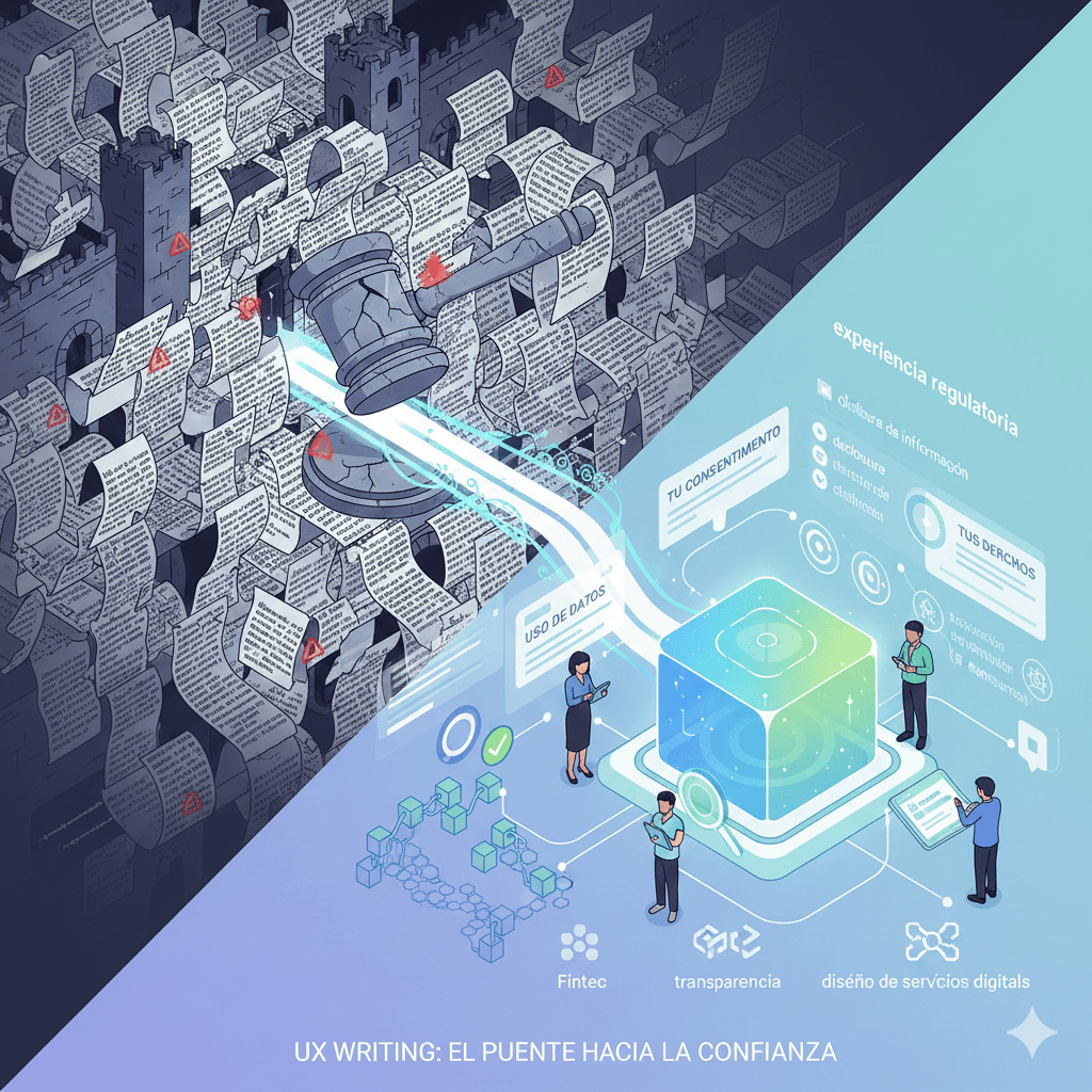 El UX Writing se ubica en el punto de fricción donde se decide si un mensaje regulatorio se interpreta, se acepta o se ignora.